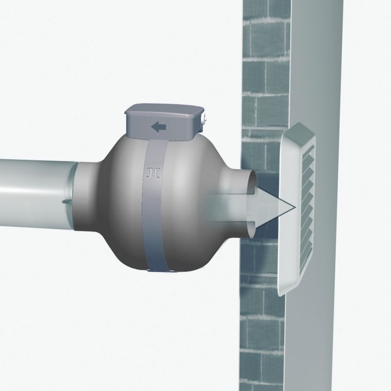 Ventilator centrifugal-axial cu montaj in-line pentru evacuarea aerului prin tubulatura de ventilatie din spatii comerciale.