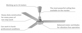 Se recomanda utilizarea acestor ventilatoare in spatii inalte, cu umiditate peste medie.