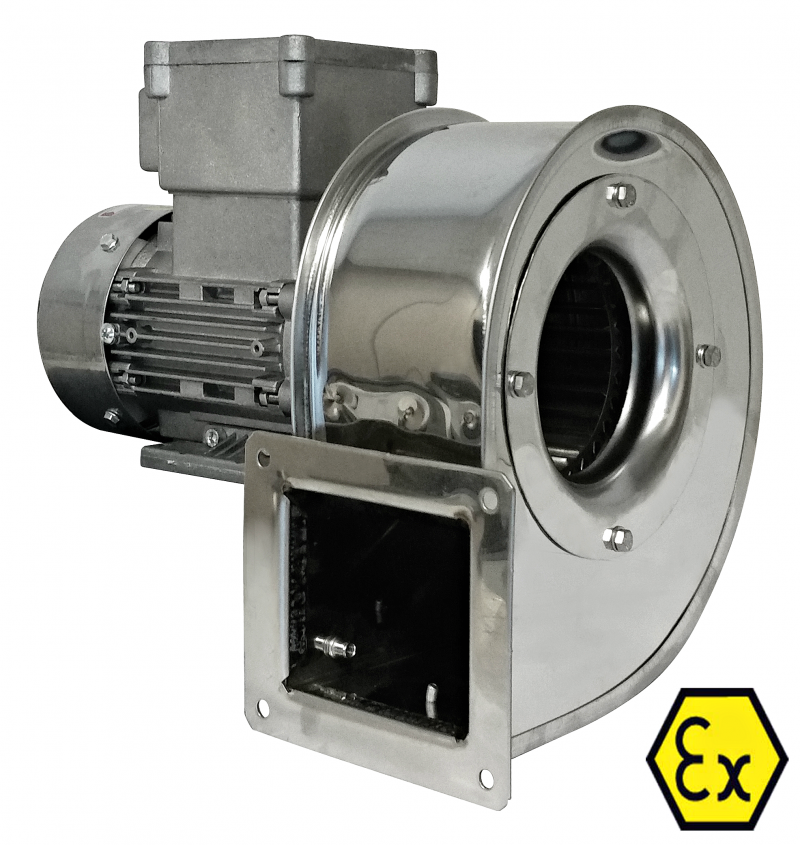 Ventilator centrifugal antiex din inox pentru medii industriale corozive cu atmosfera potential exploziva.