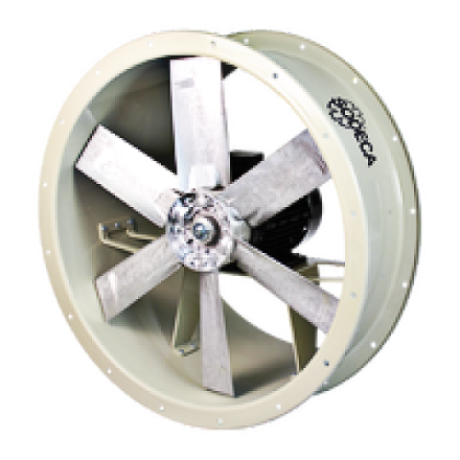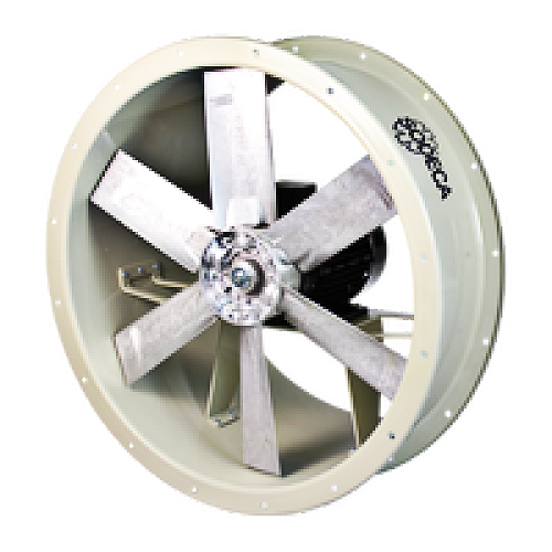 Ventilatoarele sunt alcatuite din carcasa din tabla de otel, elice turnata din aluminiu cu lamele cu unghi variabil si motor asincron trifazat certificat F300/F400 (optional, cu doua viteze). Sensul fluxului de aer: motor->elice.