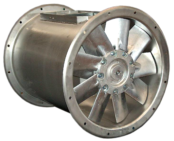 ​Carcasa ventilatoarelor este confectionata din otel inoxidabil AISI304 si are flanse de cuplare la ambele capete. Elicea este realizata din aluminiu turnat, cu pale cu unghi variabil.