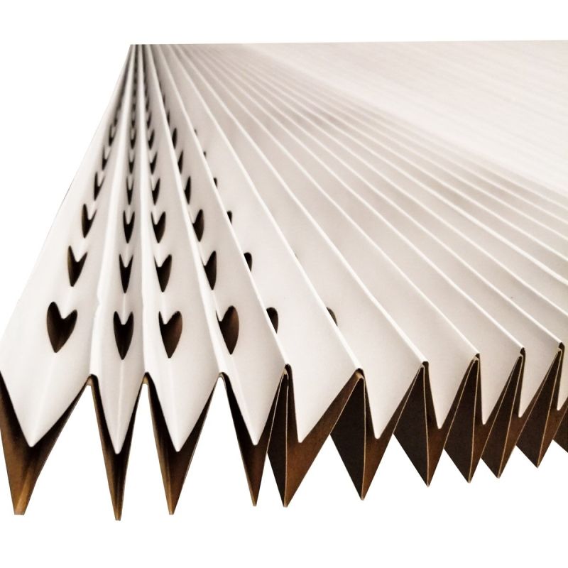 Filtrul carton labirint se compune din două coli îndoite găurite în rânduri alternative şi lipite la muchii.