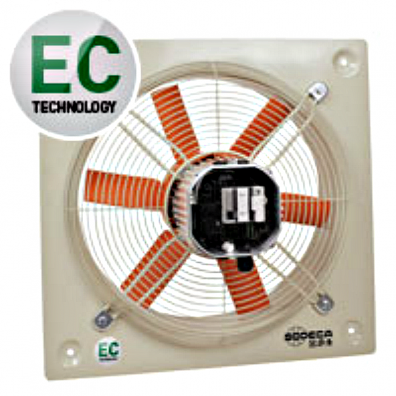Seria HEP/EW - Ventilatoare axiale de perete echipate cu motoare electrice cu tehnologie E.C. care asigura un consum energetic redus, respectiv nivel de zgomot si vibratii scazute.