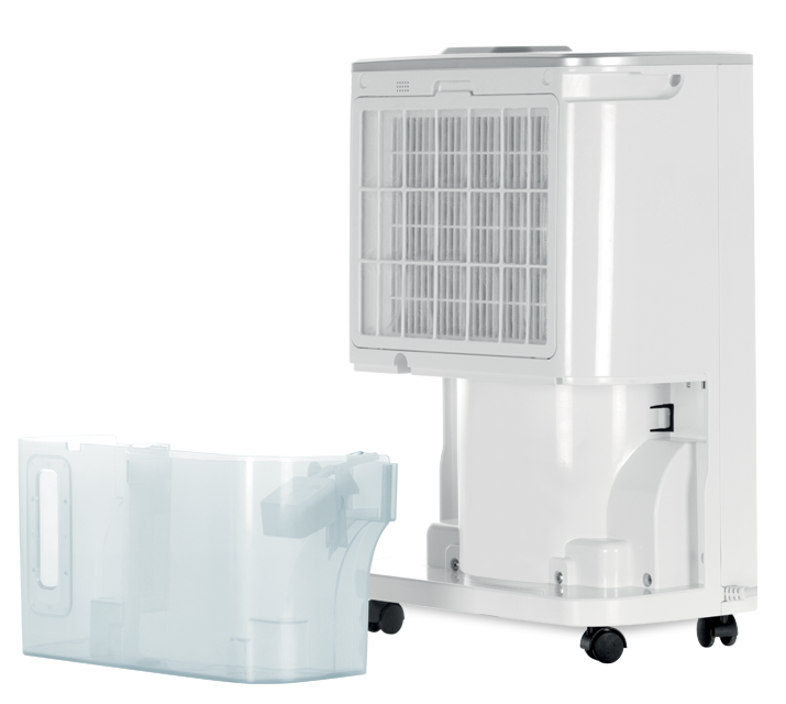 Dezumidificatorul are carcasa alba confectionata din ABS si are in componenta: