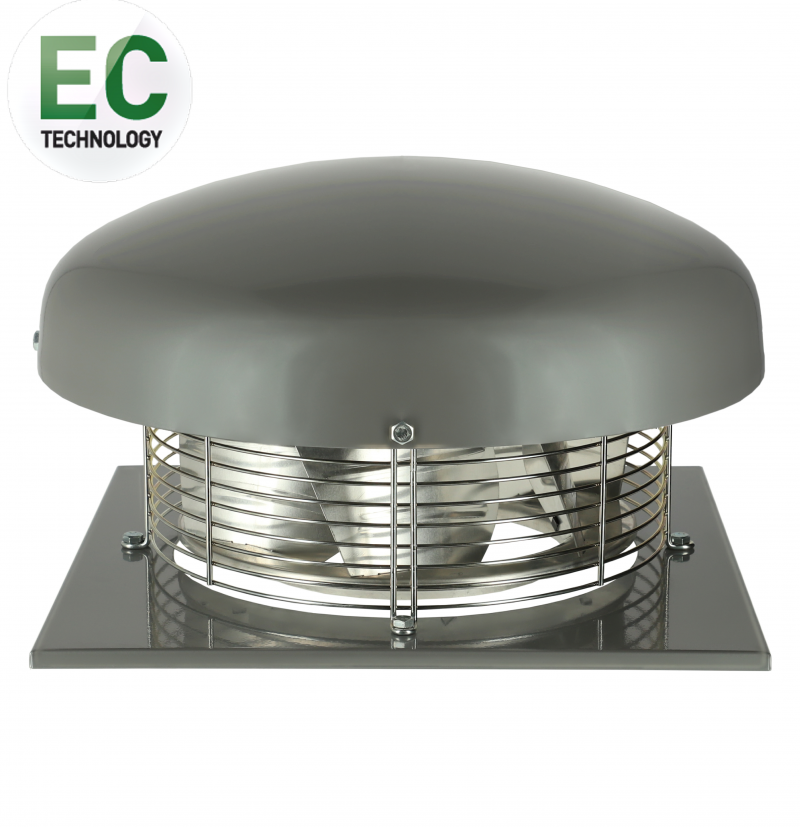 Ventilator centrifugal de acoperis cu motor cu tehnologie EC pentru aplicatii in spatii comerciale sau industriale.