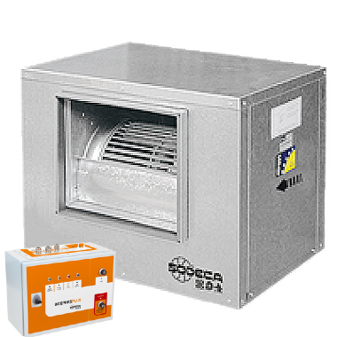 BOXPRES PLUS - Echipament de presurizare a scarilor si a cailor de evacuare in caz de incendiu care asigura un control automat al debitului de aer pentru a crea si mentine o suprapresiune de 50 Pa in zona deservita.