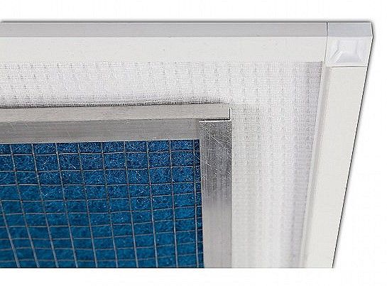 Filtrul este din material textil sintetic, clasa G2/G3 (ISO Coarse 30... 50%) si este montat intr-o rama detasabila.