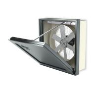 Ventilator axial de perete pentru desfumare cu trapa de deschidere motorizata.