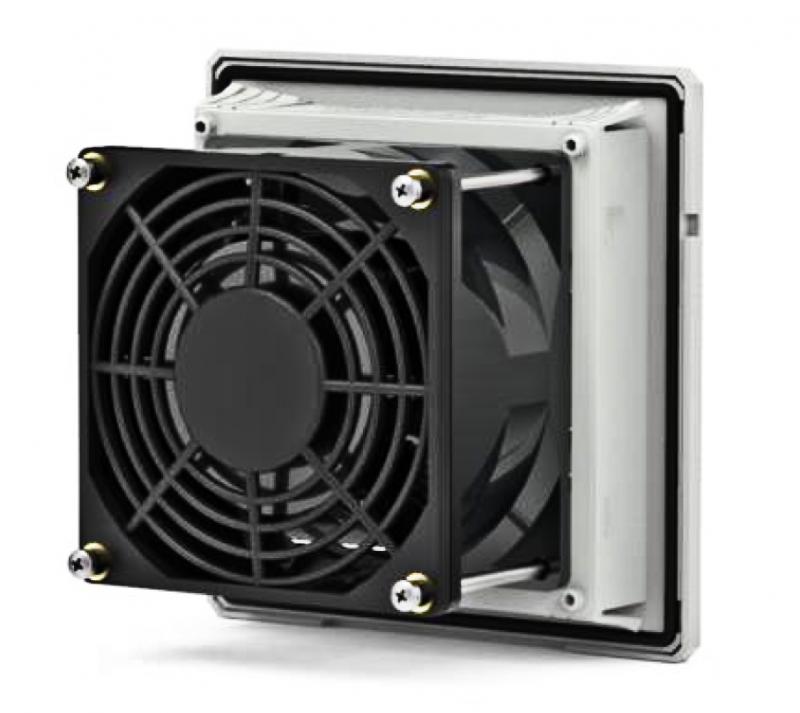 Seria PF - Ventilator introducere aer cu grila de ventilatie si filtru (tip PFA) pentru racire tablouri electrice, montaj rapid pe usa prin clipsare, fara suruburi.