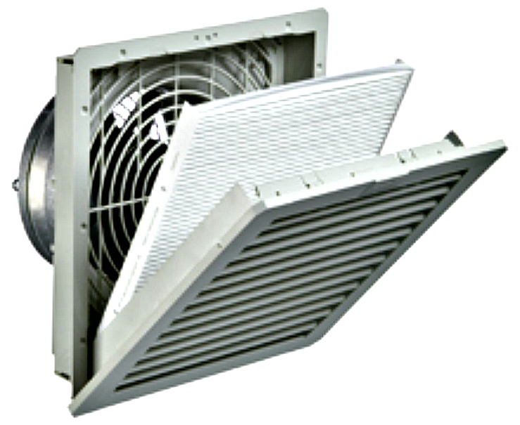 Seria PF - Ventilator introducere aer cu grila de ventilatie si filtru (tip PFA) pentru racire tablouri electrice, montaj rapid pe usa prin clipsare, fara suruburi.