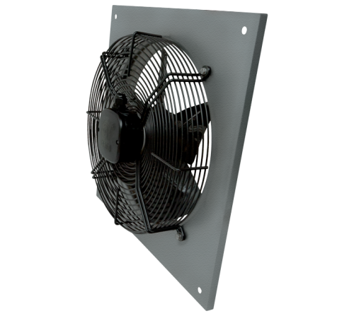 Ventilatoarele sunt antrenate de un motor asincron cu protectie termica, grad de protectie IP54, clasa de izolare I, rotor montat pe rulmenti cu bile, elice din otel cu acoperire poliesterica de culoare neagra, grilaj de protectie.