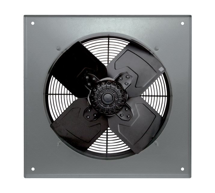 Ventilatoarele sunt antrenate de un motor asincron cu protectie termica, grad de protectie IP54, clasa de izolare I, rotor montat pe rulmenti cu bile, elice din otel cu acoperire poliesterica de culoare neagra, grilaj de protectie.